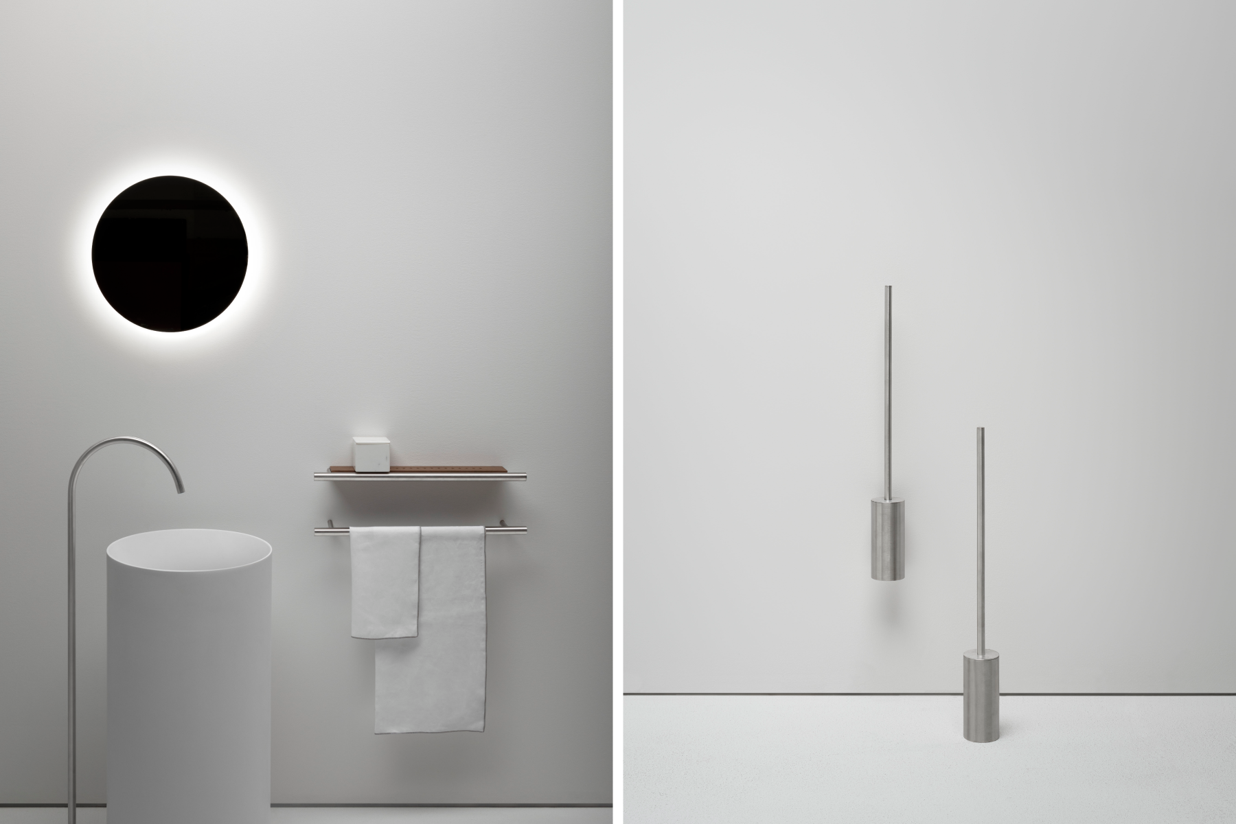 La collezione di Accessori Cilindro disegnata da Victor Vasilev è caratterizzata da un’estetica essenziale, dal forte segno grafico, capace di contribuire a definire l’architettura dell’ambiente bagno. Oggetti dal design contemporaneo, definiti dal progettista utilizzando forme tubolari in acciaio inox AISI 304 mixate con legno e Cristalplant Bio Active.