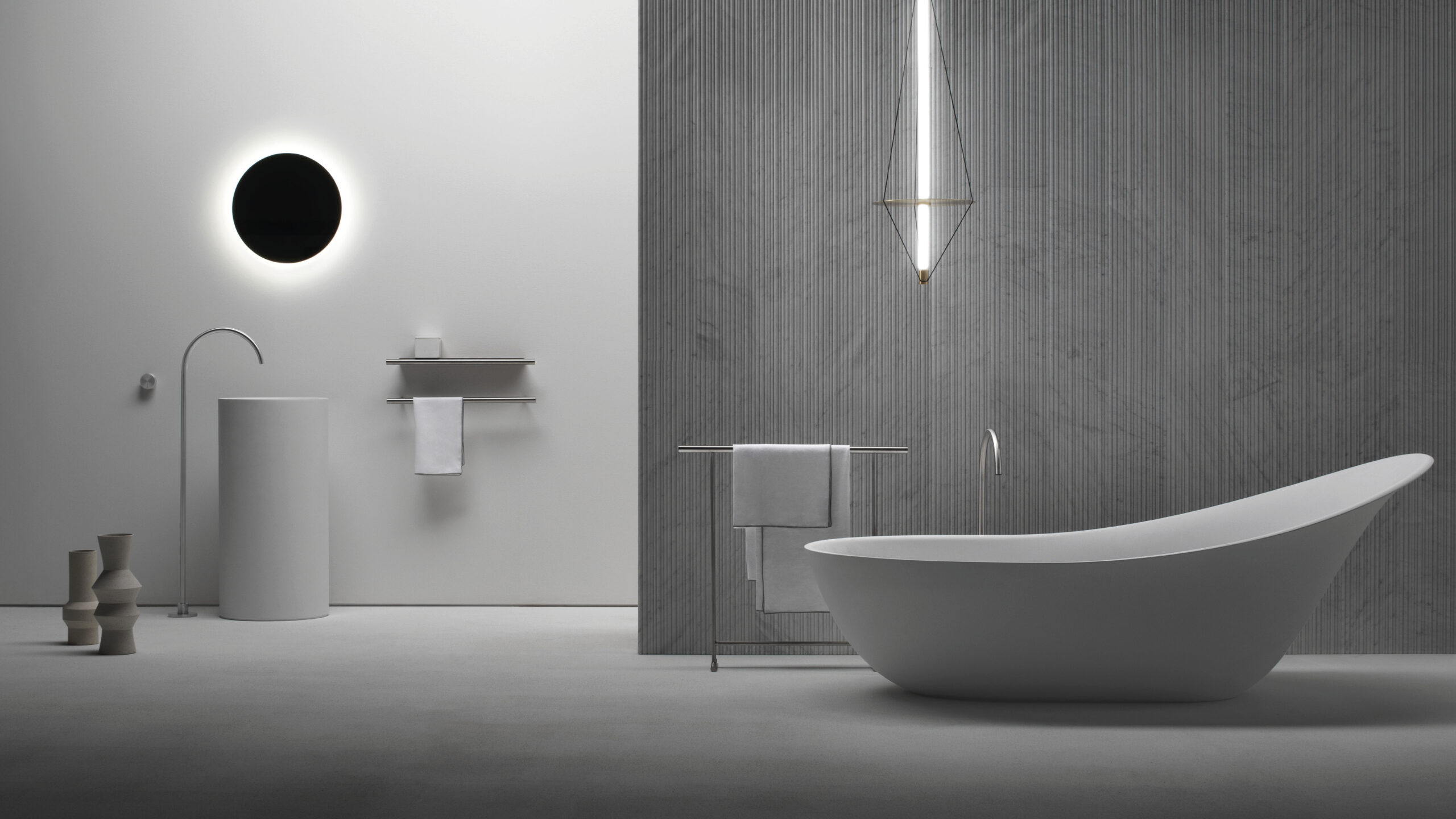 La collezione di Accessori Cilindro di Victor Vasilev reinterpreta gli accessori da bagno – come porta asciugamani, porta rotoli e scopini – attraverso linee essenziali e un segno grafico distintivo. Elementi da scegliere singolarmente o da combinare, per creare un insieme minimale ed elegante.