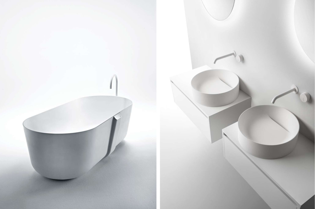 Falper è stata tra le prime aziende ad utilizzare l’innovativo Cristalplant® Biobased, il primo solid-surface eco-sostenibile. Il materiale è composto per la maggior parte da cariche minerali di triidrati di alluminio di elevata purezza legati da resine di origine vegetale, ed è conosciuto per la bellezza simile alla pietra naturale e per l’elegante effetto soft touch.