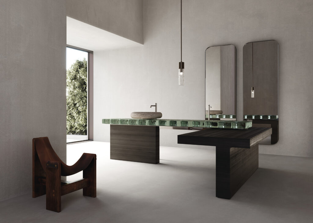 The company’s philosophy, essential aesthetics, cutting-edge technology, and artisanal know-how shape the unique identity of the brand, thanks to the interpretation of renowned names in international design.