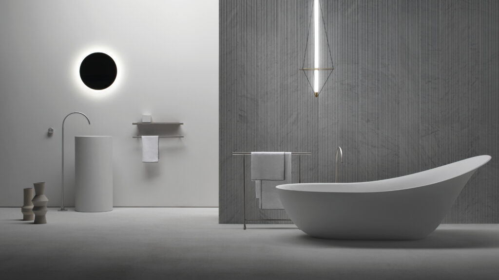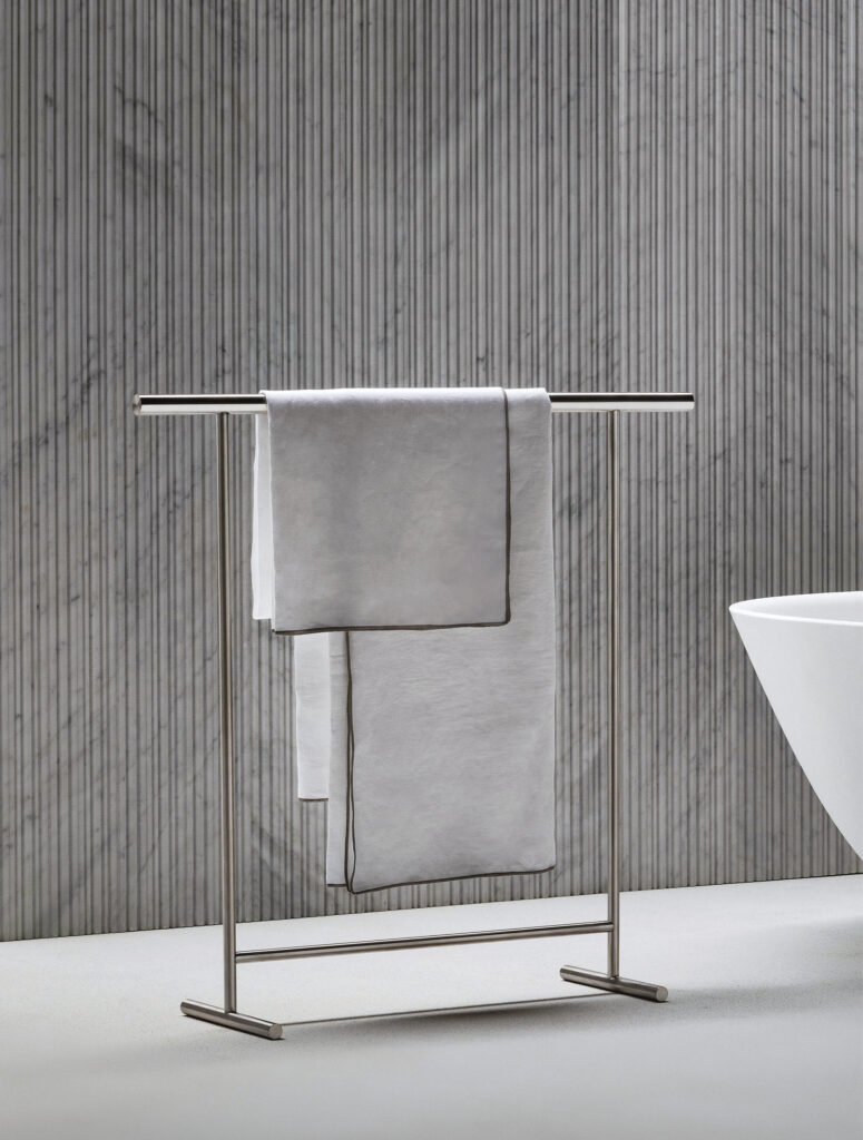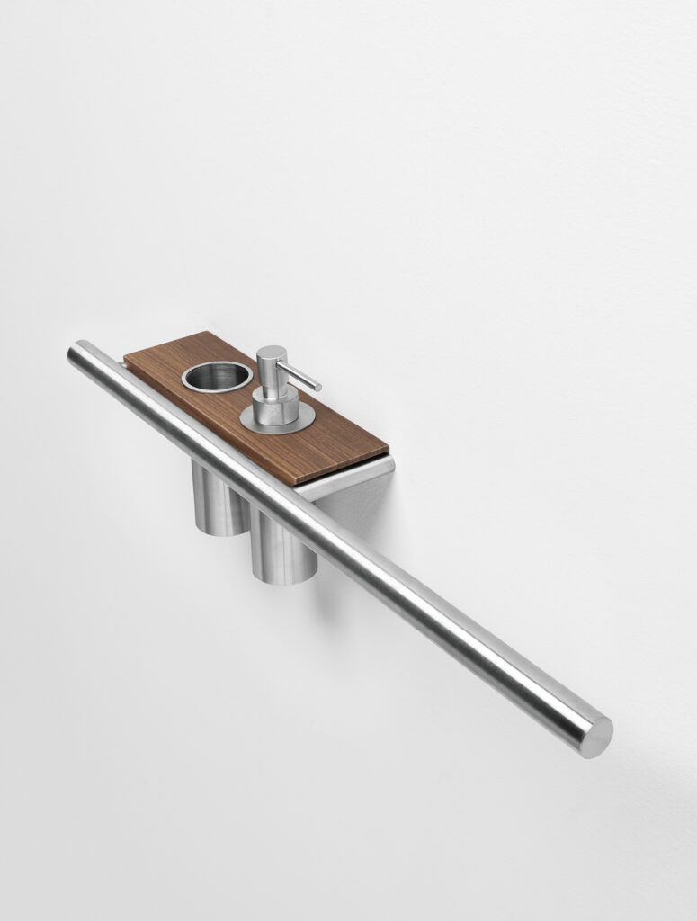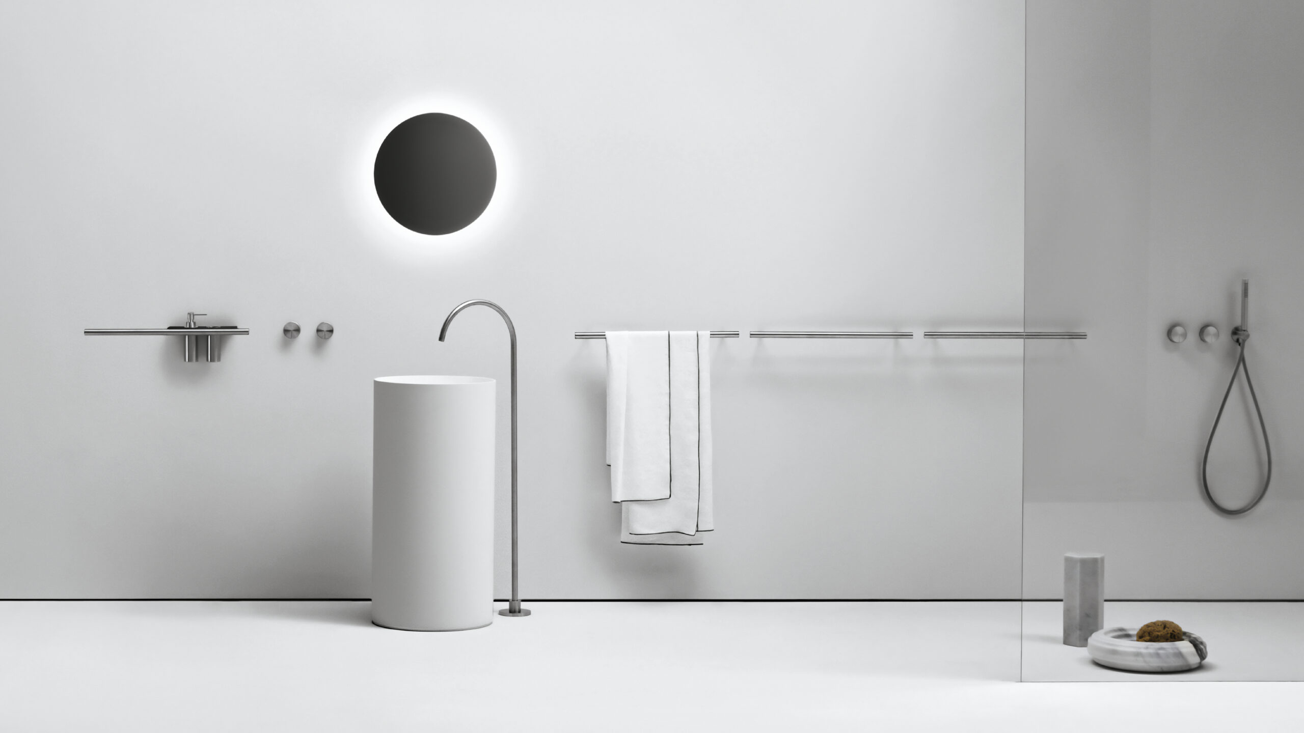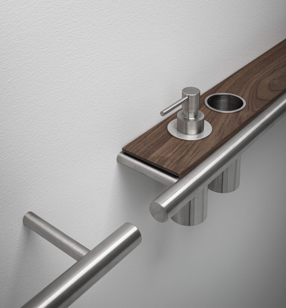 The Cilindro Accessories collection by Victor Vasilev reinterprets bathroom accessories — such as towel rails, toilet roll holders, and brushes — through essential lines and a distinctive graphic touch. Each piece can be selected individually or combined to create a minimalist and elegant ensemble.
