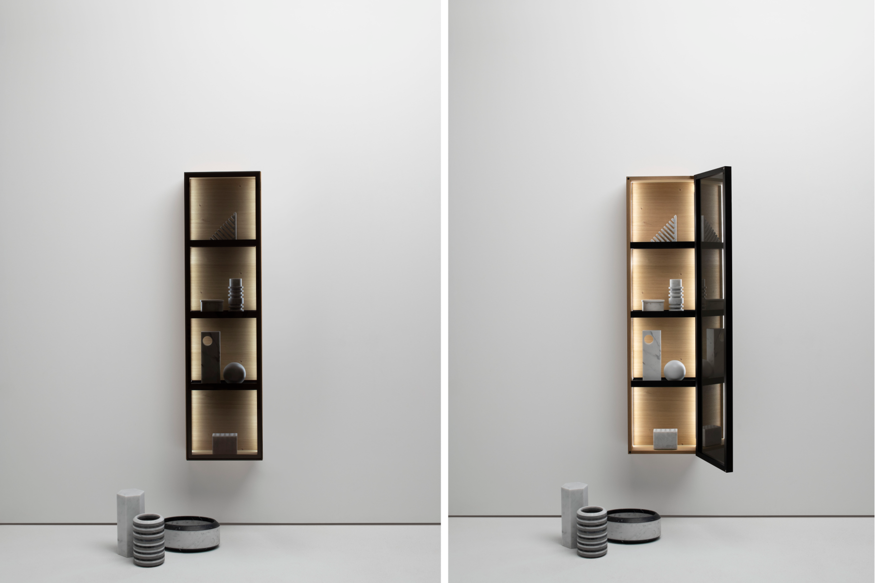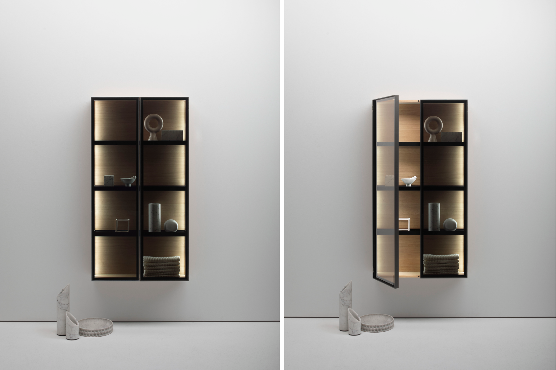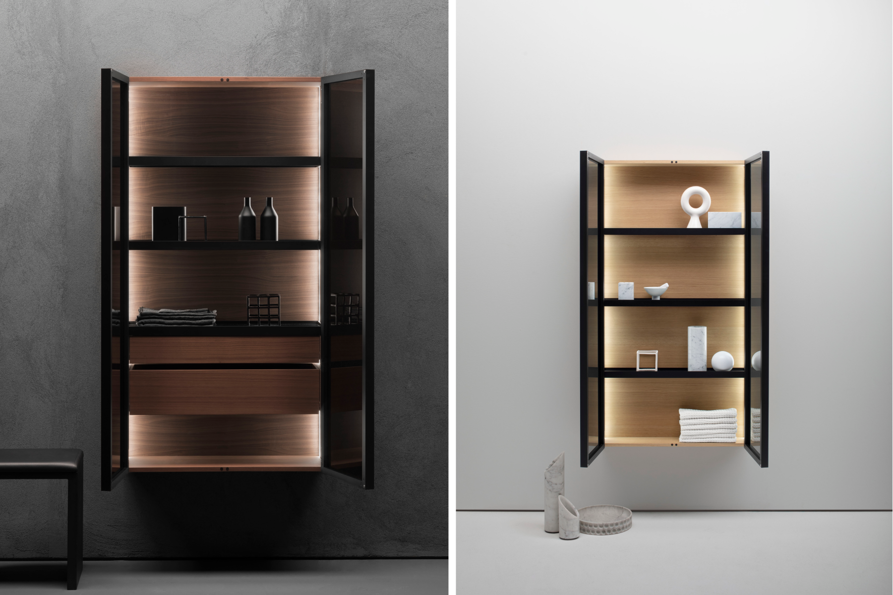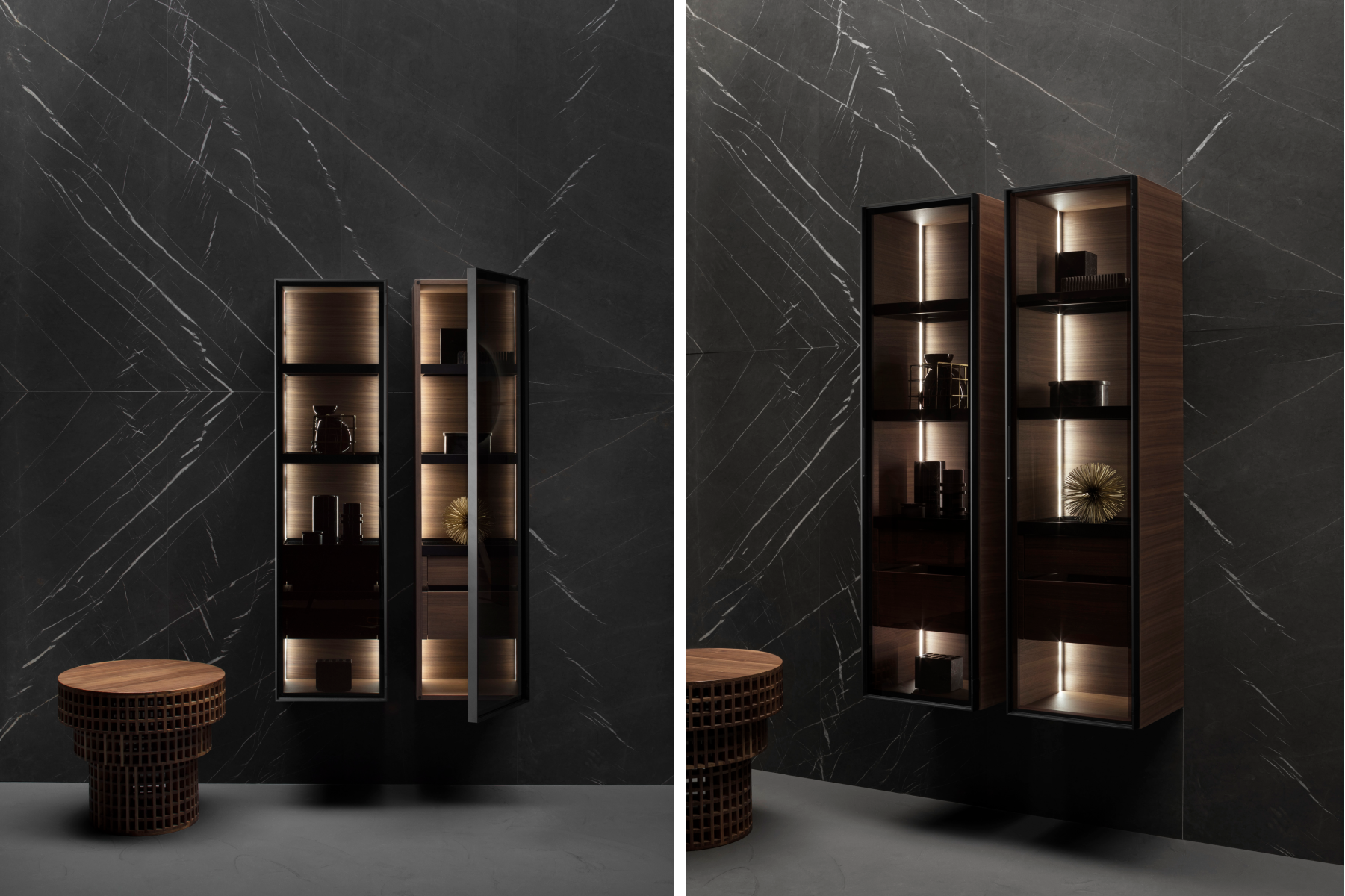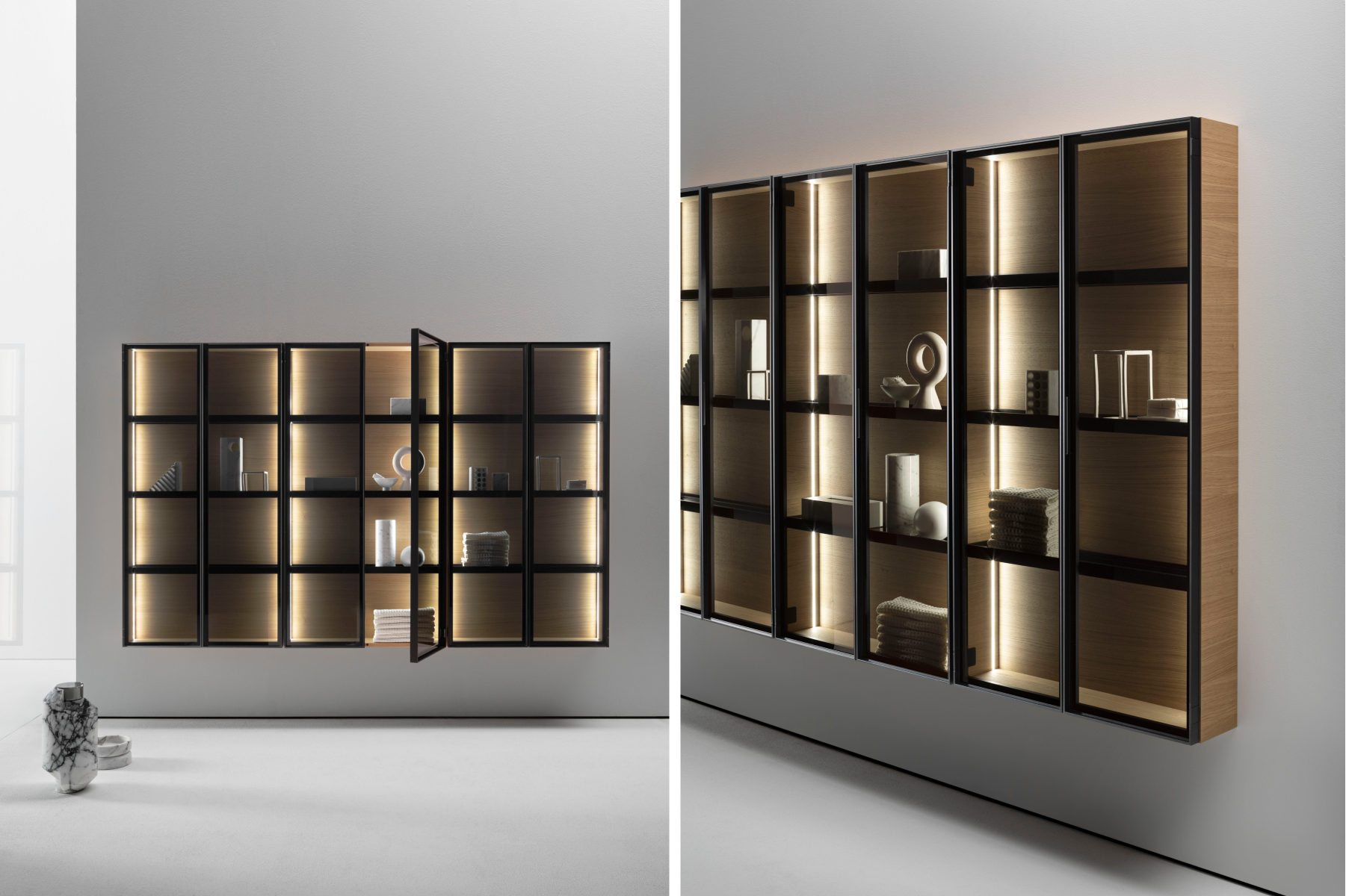 Designed to store your most precious items while keeping everything close at hand — hence the name Butler, evoking the role of a personal attendant — the collection stands out for its refined details: elements in aluminium, glass, solid walnut or oak, and matte or glossy lacquered finishes from the Falper catalogue.