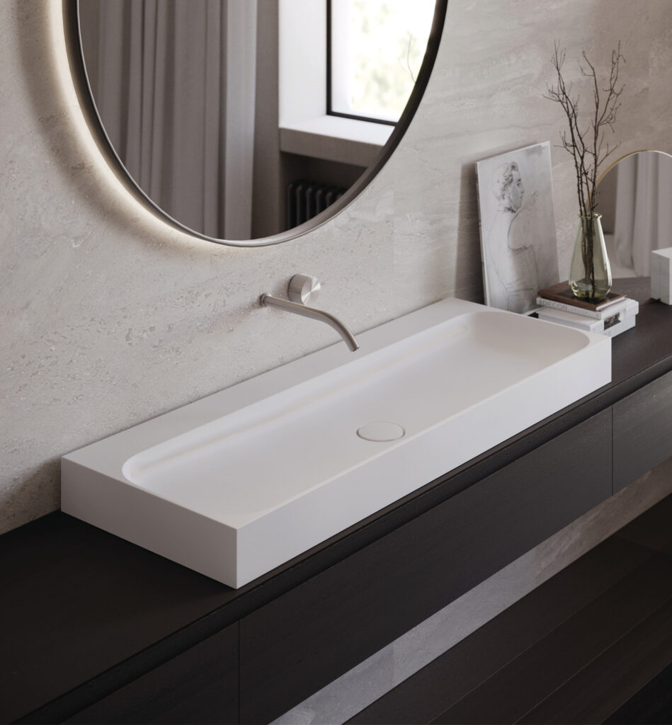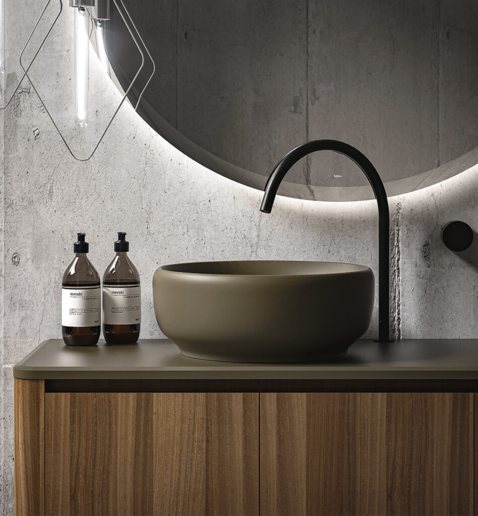Falper’s countertop washbasins are designed to transform the bathroom into a daily aesthetic experience. Minimal design, masterful lines, and excellent materials come together to create true furnishing elements: discreet protagonists that enrich the environment with character and harmony.