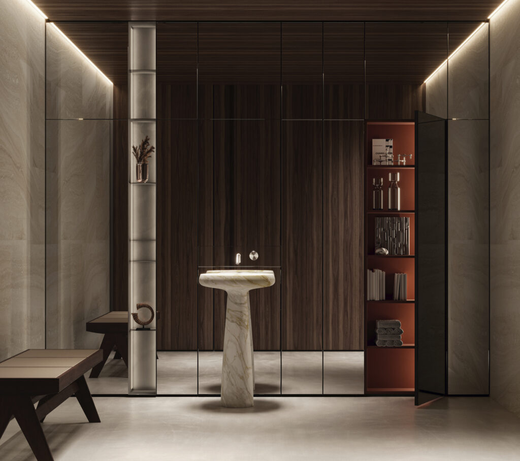 From luxury hotels to wellness resorts, every project stems from a vision that unites refined materiality with timeless design. Falper solutions integrate seamlessly into spaces, offering exclusive environments curated in every detail.