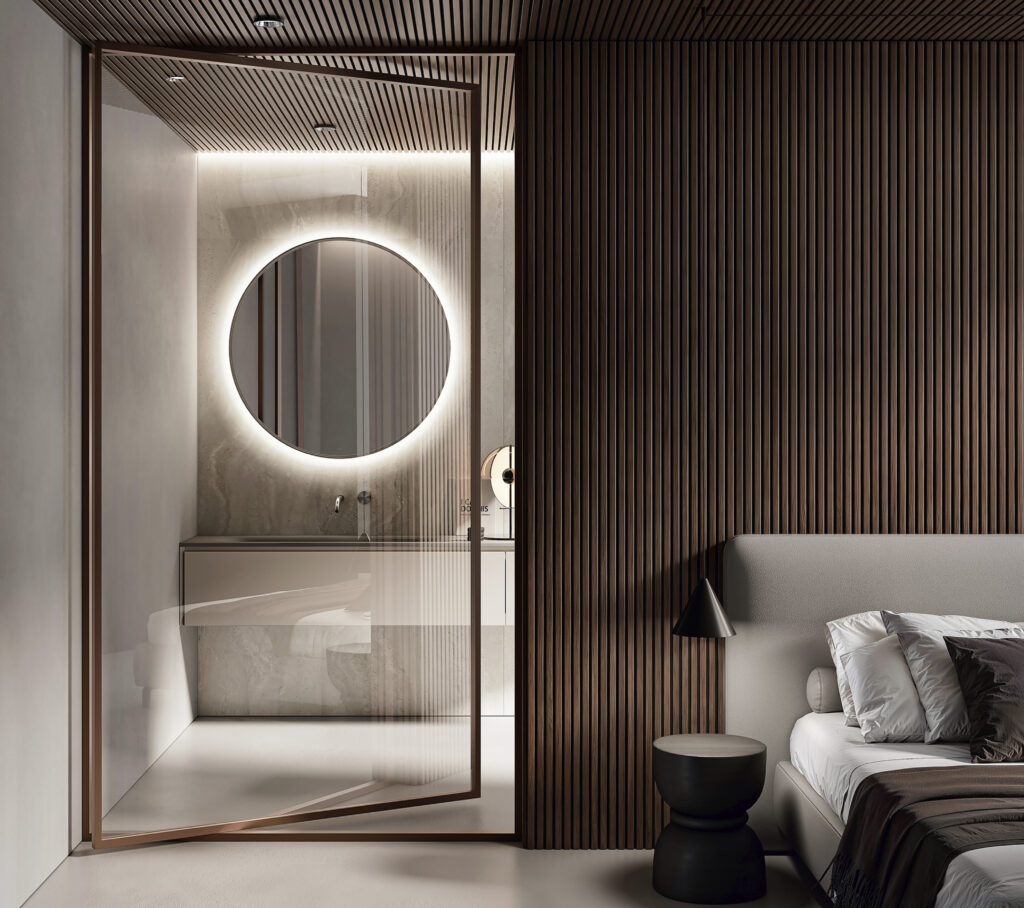 En-suite bathrooms, directly connected to the bedroom, create an elegant continuity between intimacy and functionality. Designed to ensure comfort and privacy, these spaces embody refined character — where contemporary lines and exquisite details transform daily life into a personal wellness experience.