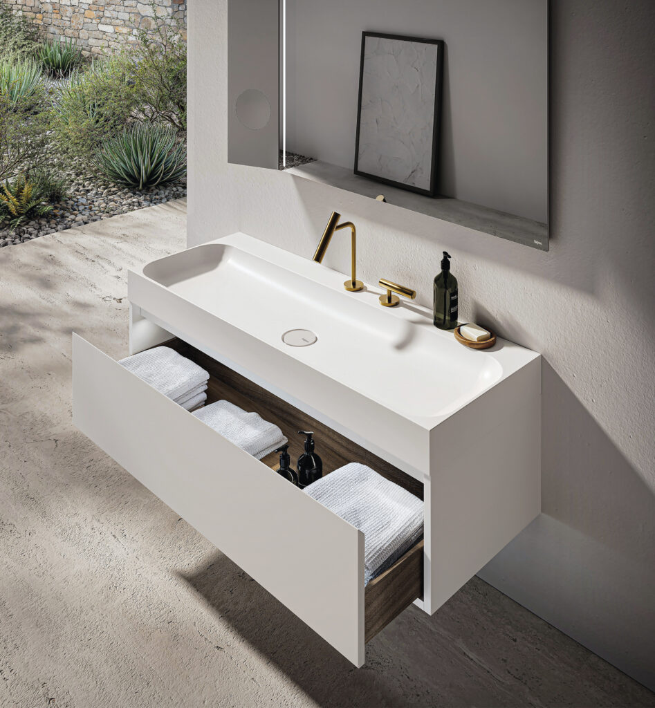 The Viaveneto collection represents the brand’s most complete and versatile bathroom system, offering tailor-made solutions and endless possibilities for customization. Elegance and functionality blend in every detail, while craftsmanship allows for fully personalized dimensions and colors.